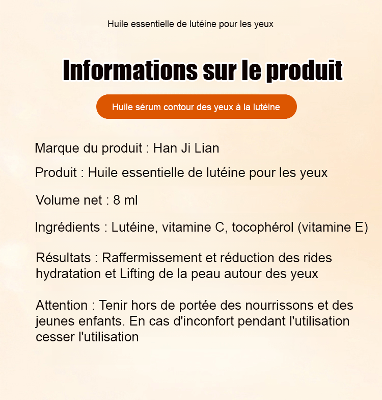 « Insatisfait du résultat ? Remboursement complet ! »Huile sérum anti-rides et lissante pour les yeux