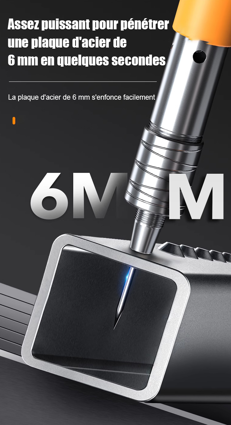 [Clouage + Perçage] Pénètre une plaque d'acier de 6 mm d'épaisseur en 1 seconde