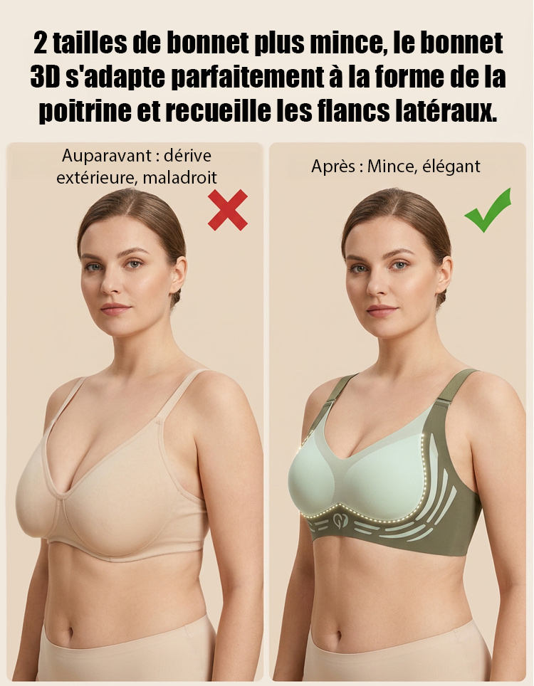【10 kg de finesse en apparence】 Soutien-gorge 3D à contraste sans armatures 💖 | 2 bonnets en moins | Effet anti-affaissement | Invisible et sans coutures | Respirant 🌸