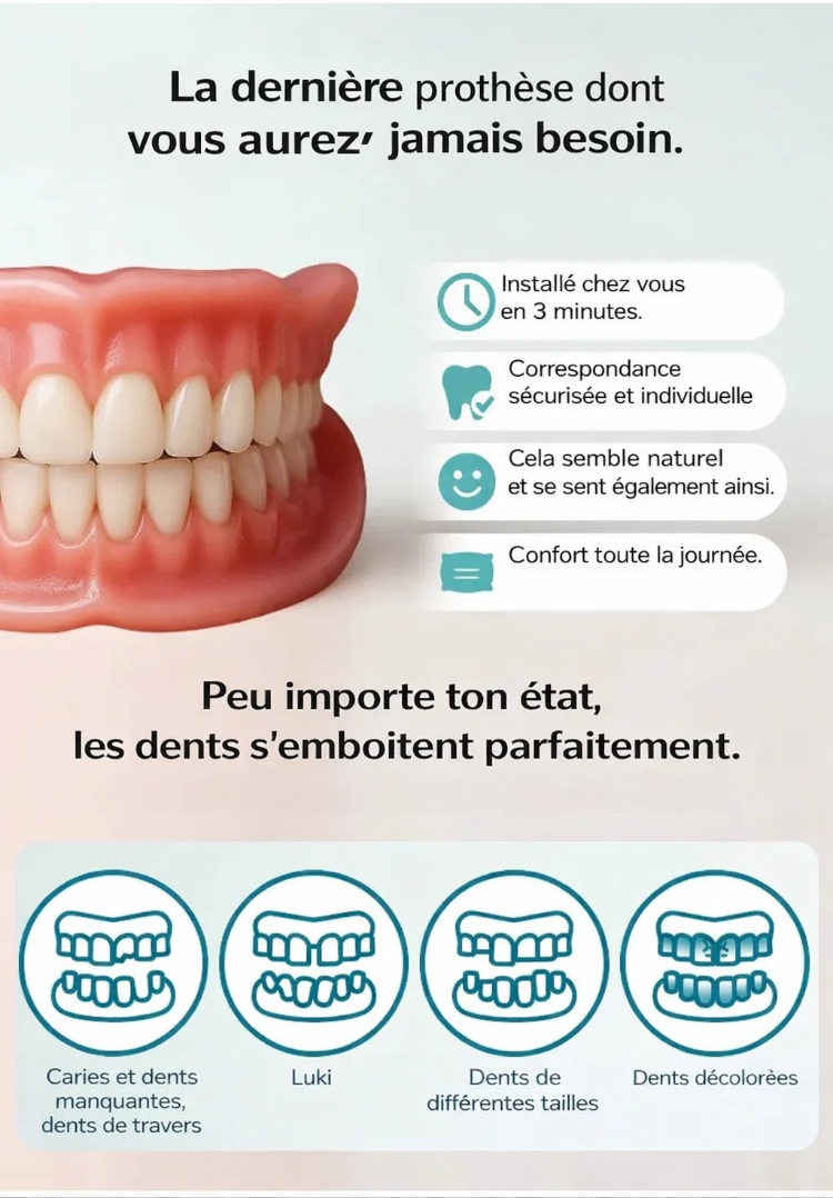 ⏱️ Un ajustement parfait en seulement 1 minutes – sans pâte adhésive et sans aller chez le dentiste !