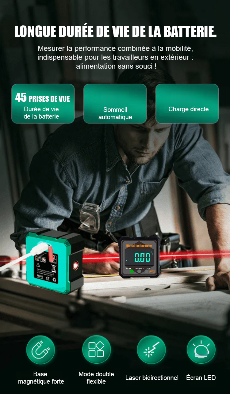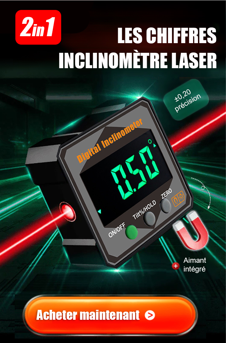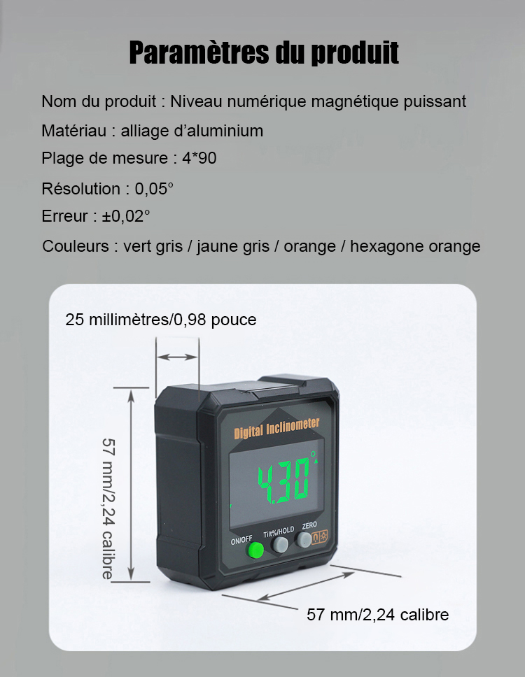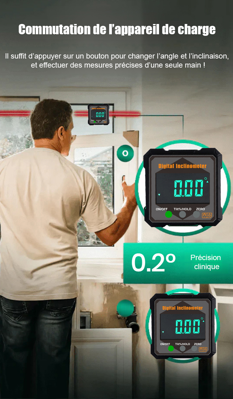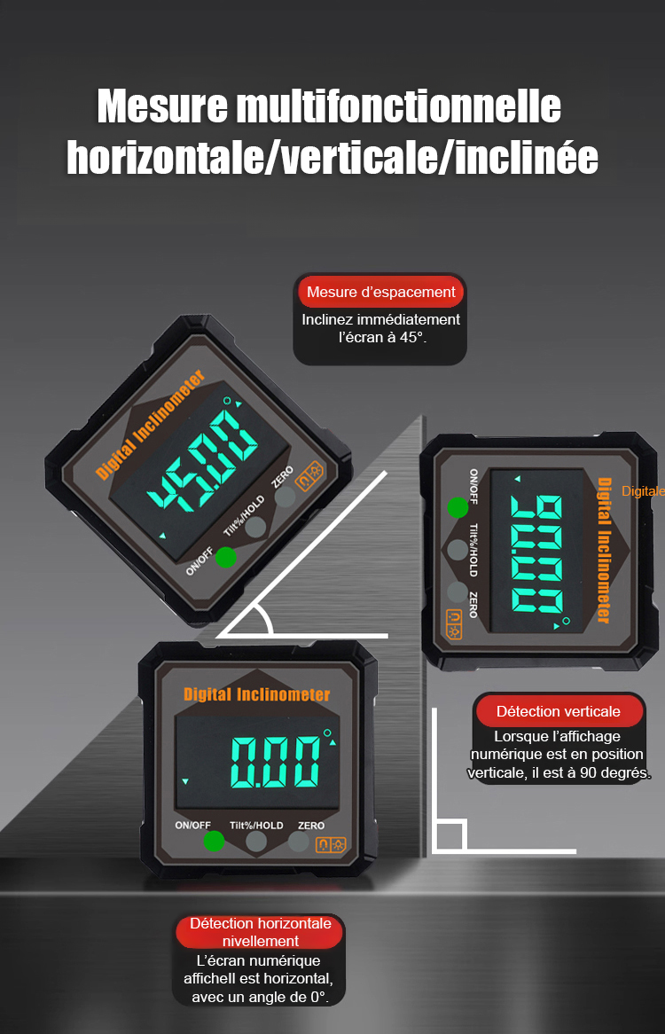 [Niveau + Rapporteur + Outil de positionnement] Niveau numérique à angle de mesure avec aimant puissant