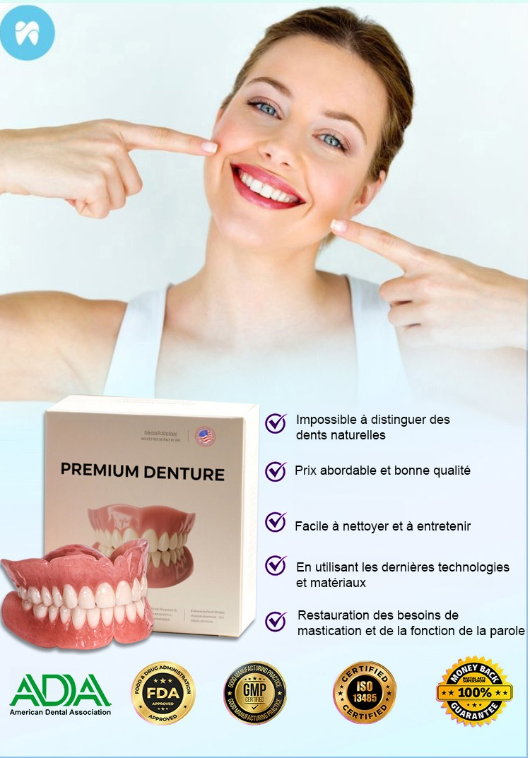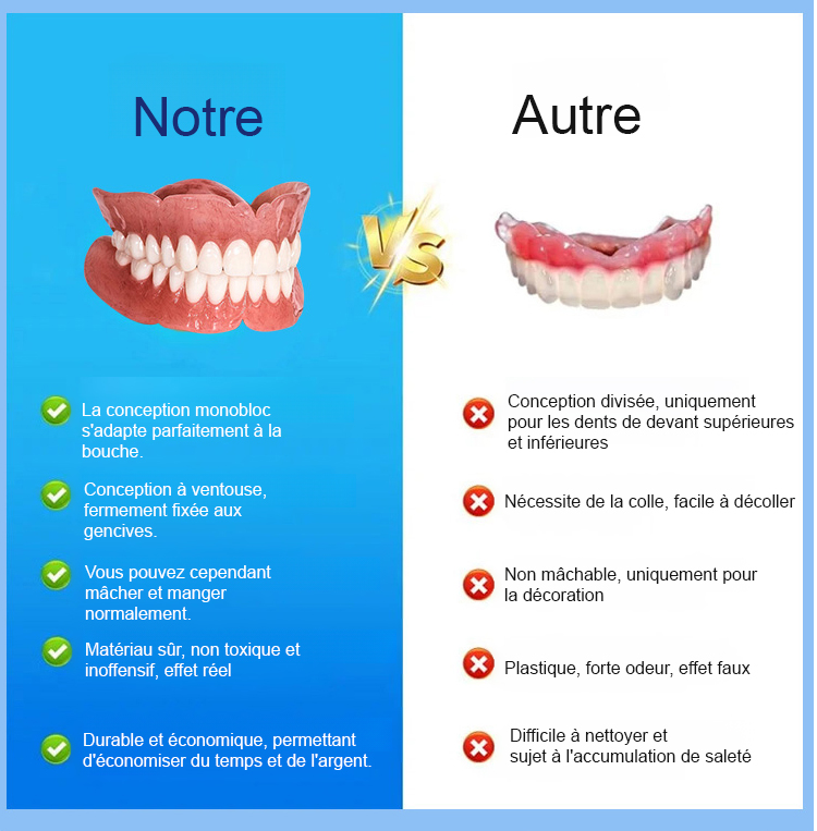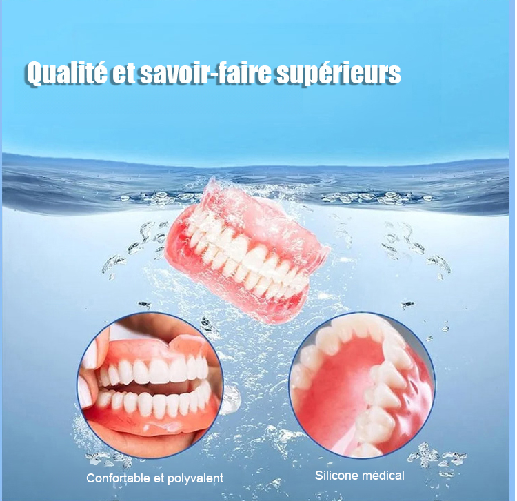 Aucun adhésif requis, s'installe en 1 seconde. Prothèse dentaire Perfect Smile