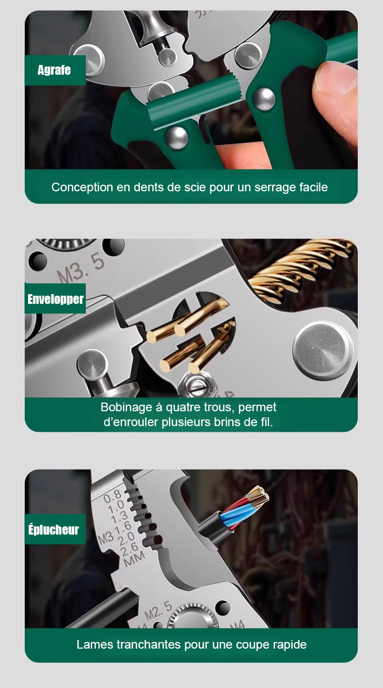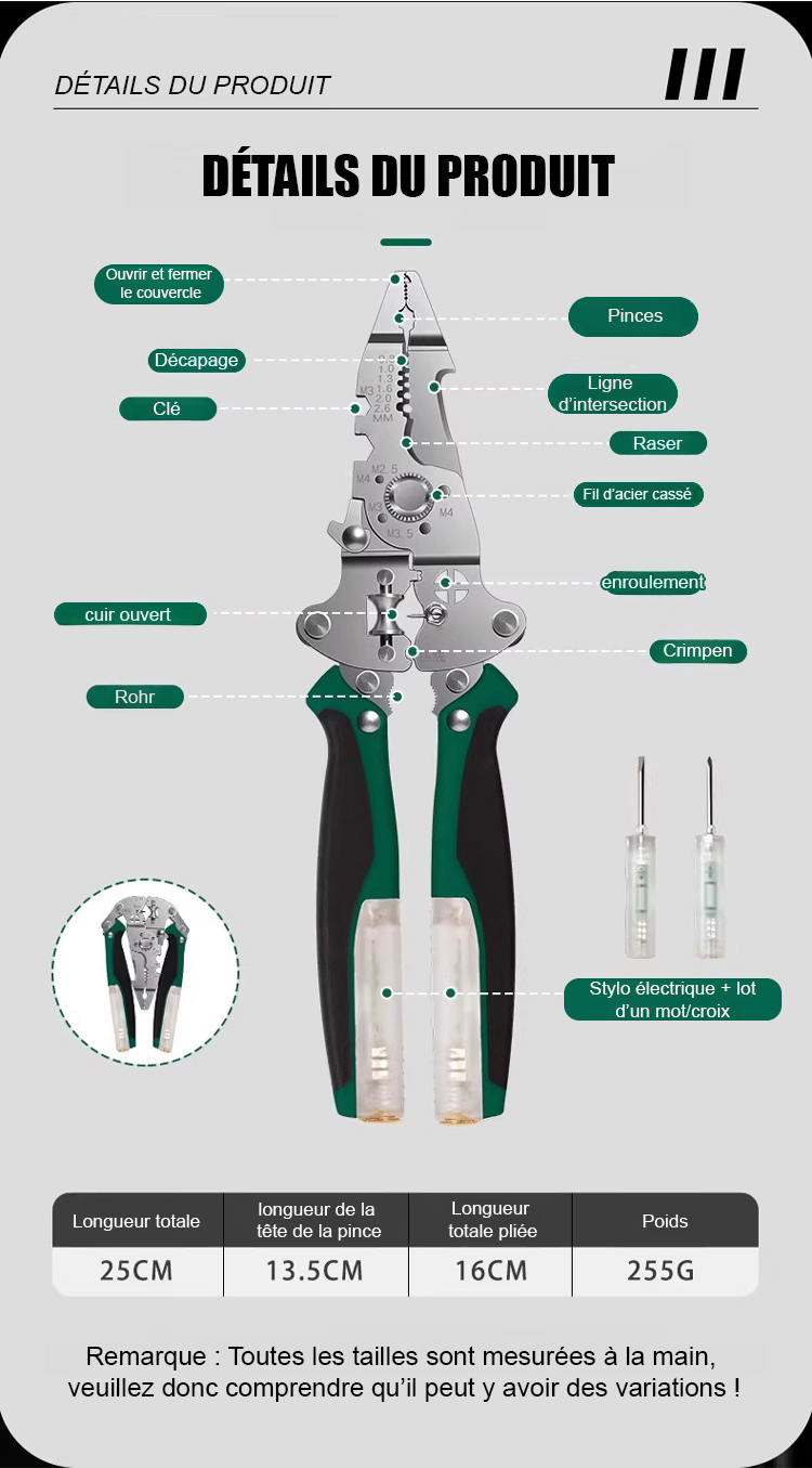 🛠️Remplace entièrement les multimètres traditionnels, les testeurs de tension, les pinces isolées, les pinces à dénuder et autres outils.